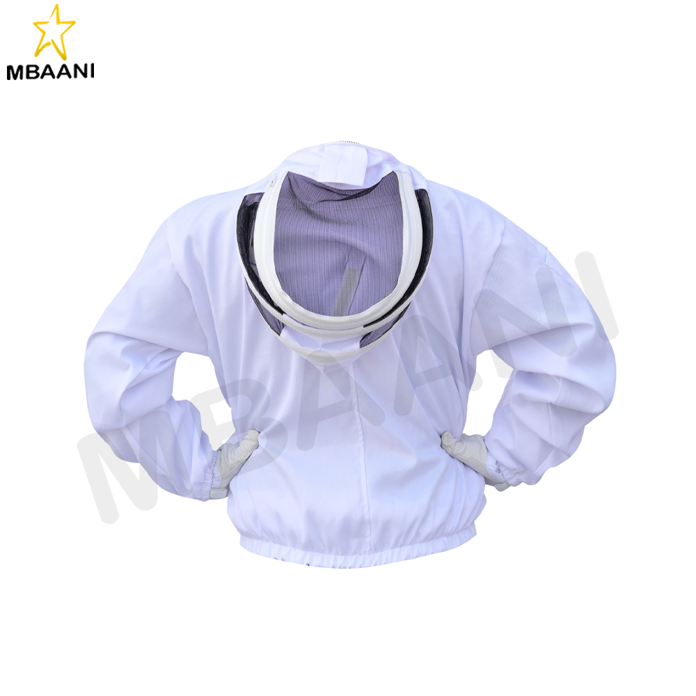 • Heavy-Duty Brass Zippers and Elastic Thumb Straps: Featuring strong brass zippers and elastic thumb straps, this jacket ensures a secure fit and durability, preventing wear and tear during daily beekeeping activities.